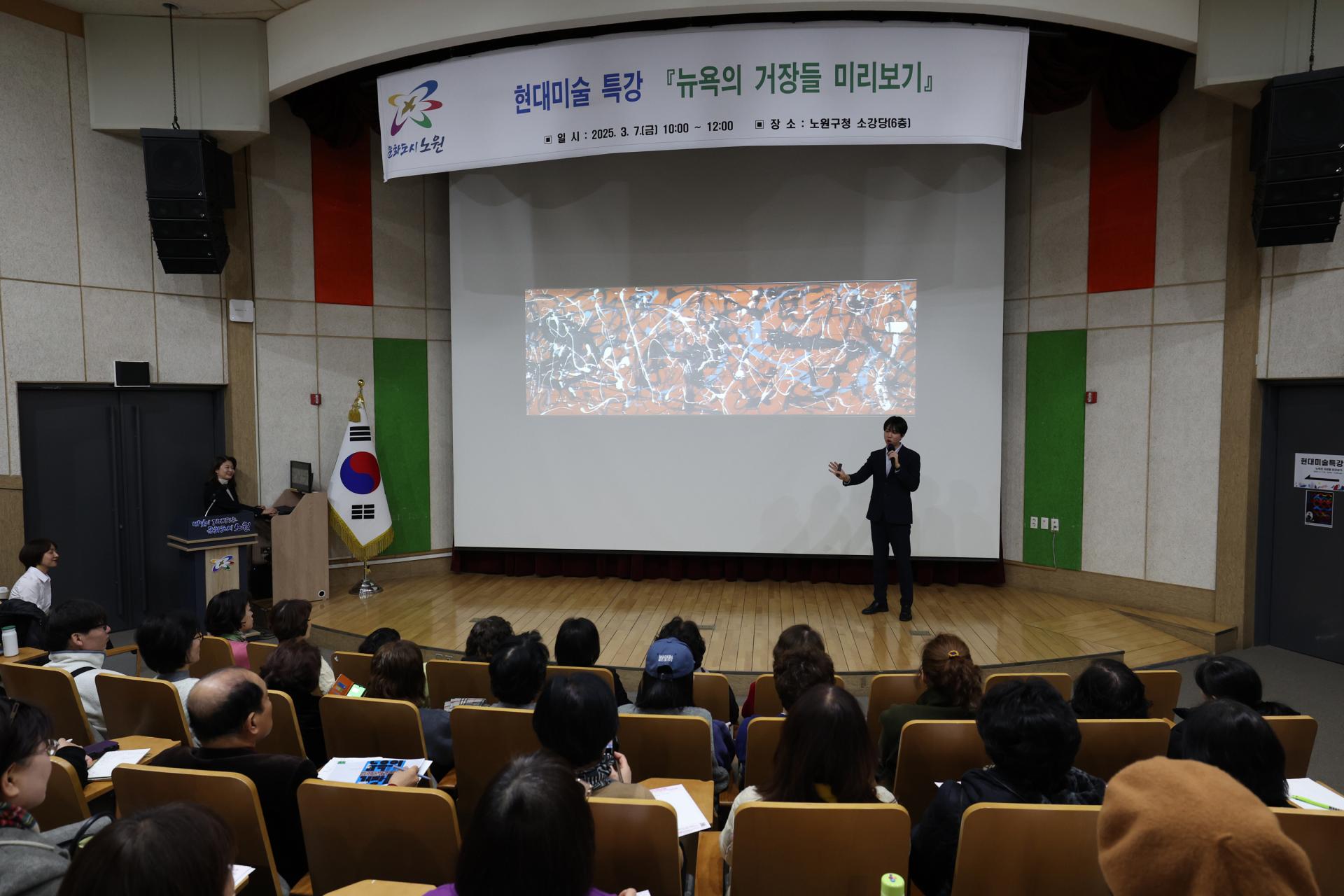 노원구청은 지난 7일, ‘뉴욕의 거장들’ 전시를 계기로 마을에서 활동하는 커뮤니티 위원과 봉사자들을 대상으로 ‘현대미술 감상법’ 교육을 진행했다.