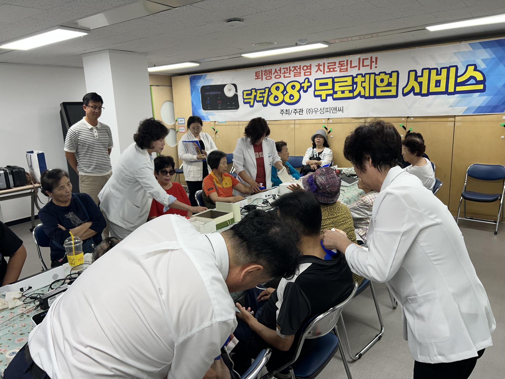 이번 봉사에서는 100명의 어르신이 우성피엔씨가 개발한 가정용 골관절염치료기 닥터88플러스를 20분간 체험했다.
