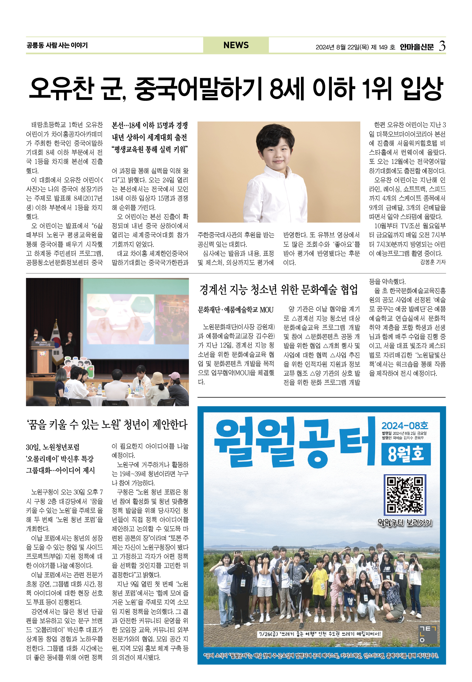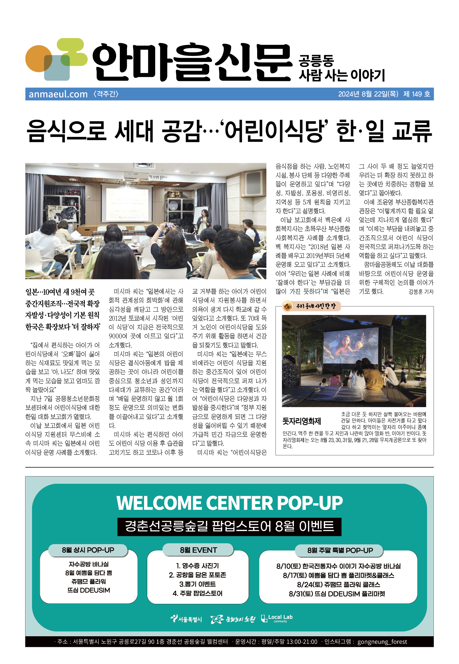 #어린이식당 #일본 #무수비에 #공릉청소년문화정보센터 #초록우산 #돗자리영화제 #오유찬 #중국어말하기대회 #경계선 #청년포럼 #발달장애인 #전기차 #노원문화 #우성아파트 #재건축 #준비위 #예추위 #김덕수 #이용식 #방자전 #해저이만리 #코로나 #공릉종합복지관 #삼계탕 #김종백 #청년일삶센터 #노원자활센터