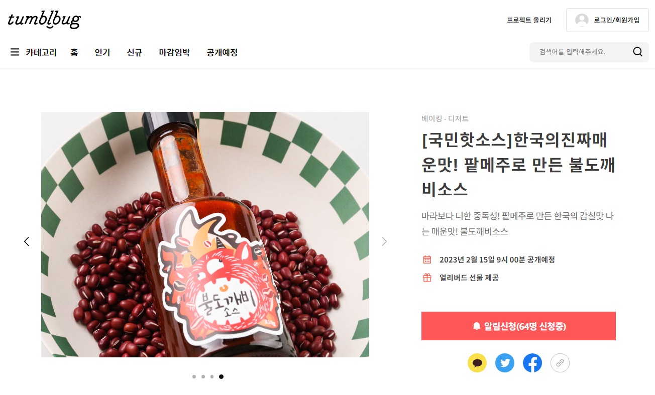 펀딩 페이지는 텀블벅에서 불도깨비소스를 검색하면 바로 찾을 수 있다.