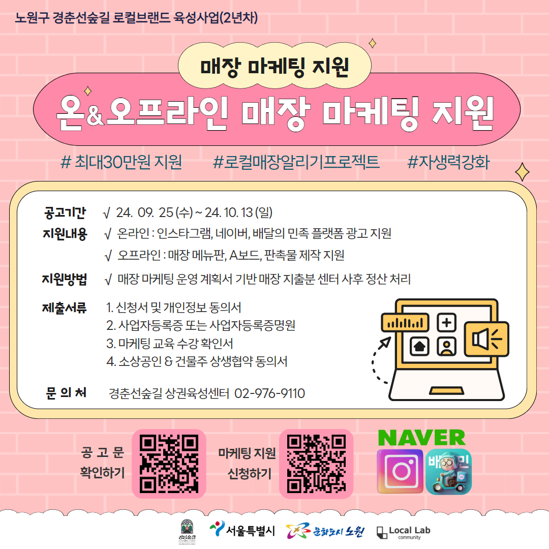 자세한 사항은 하단 매장 마케팅 지원 모집 공고문을 확인해주세요.